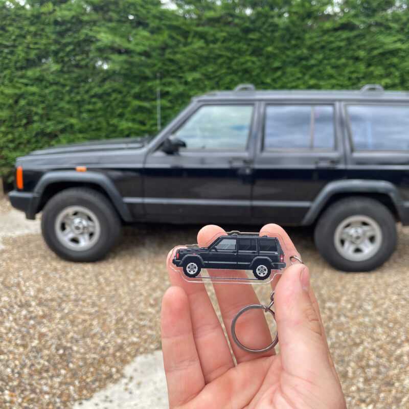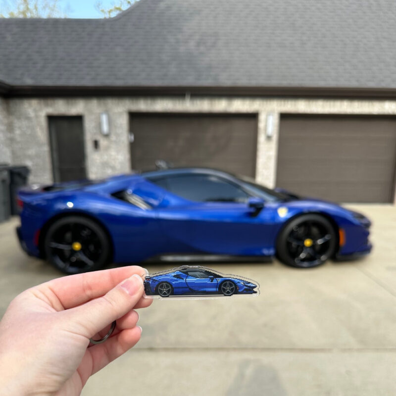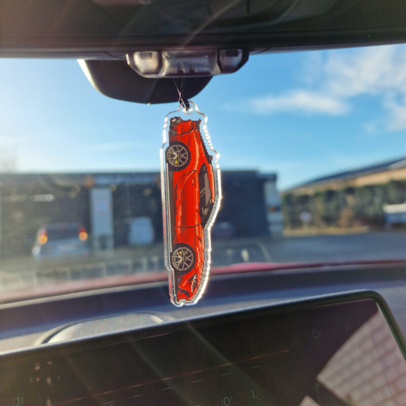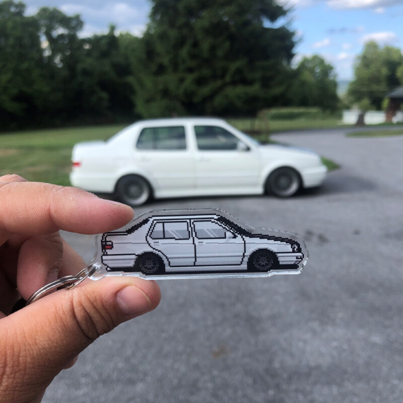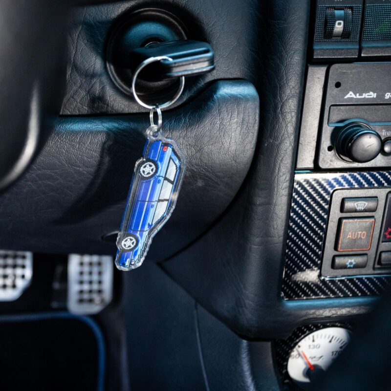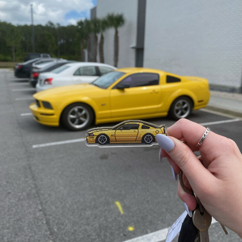 The illustration and keychain are fully customized to your vehicle, matching the color, wheels, any aftermarket parts and modifications, down to special details like stickers and everything else possible to recreate with pixel art, making it uniquely yours.