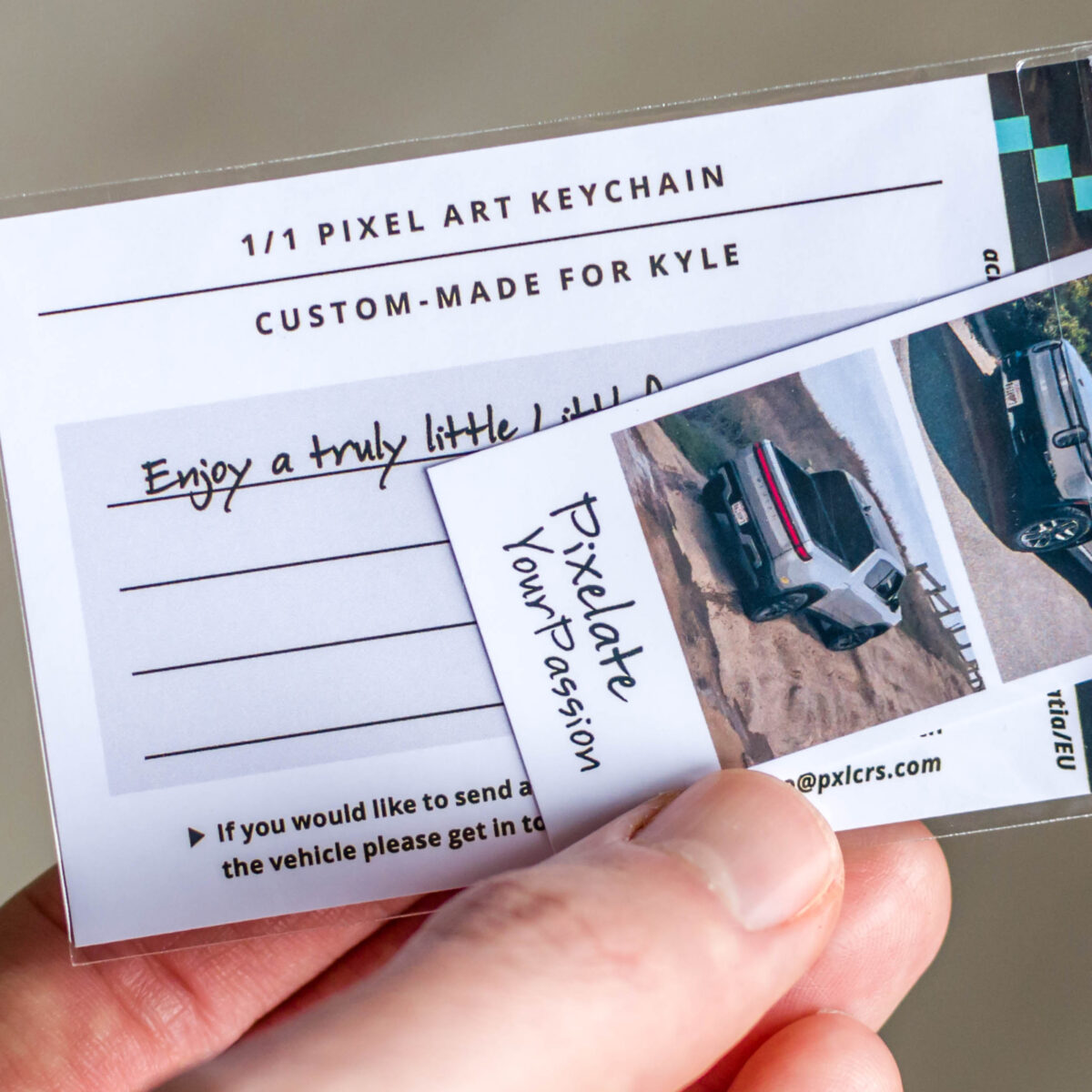 I absolutely love it when happy customers send me photos of PXLCRS keychains with their vehicles! If you have one, please email it to me.